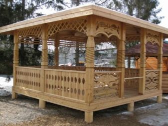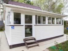 Wenn Sie kein Geld für ein einzelnes Projekt ausgeben möchten, können Sie ein typisches Gebäude bestellen. Dies wird die Zeitkosten reduzieren, aber eine solche Laube spiegelt nicht den individuellen Geschmack des Besitzers, den Stil des Ortes, seine Atmosphäre wider. Ja, und in der Größe sind typische Projekte ziemlich begrenzt. Meistens stehen drei Optionen zur Auswahl: 3x3, 3x4 und 4x4 Meter. Aber für ein kleines Unternehmen und das wird genug sein.