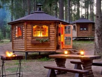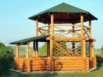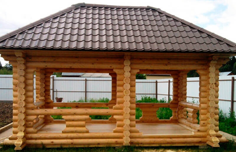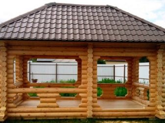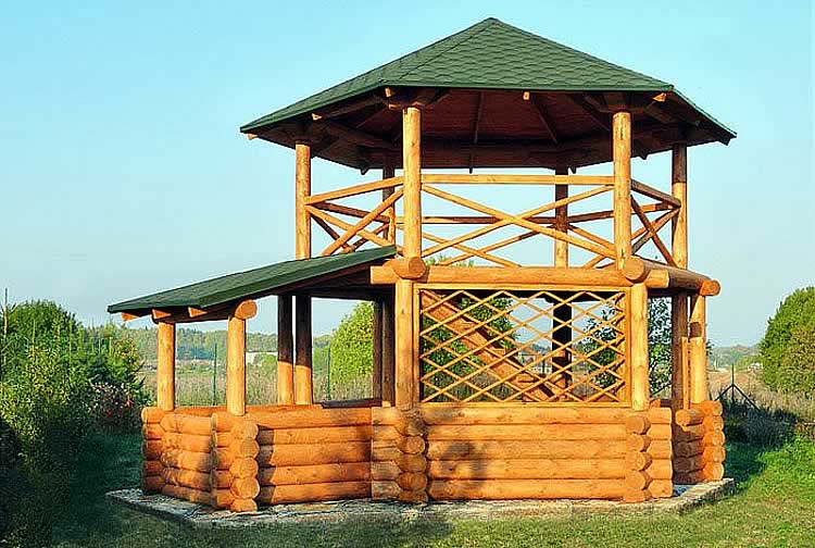 Konstruktionen von Baumstämmen - ein typischer russischer Klassiker. Sie können ein volles Haus mit Barbecue oder Grill, Sommerküche, Terrasse bauen - und einen gemütlichen und komfortablen Platz bekommen, um mit der ganzen Familie oder mit einer Firma zu jeder Jahreszeit zu entspannen. Wenn Sie ein einfacheres Design installieren, erhalten Sie einen halb geöffneten Pavillon mit einem deutlich sichtbaren Stil, der an die russische Landschaft erinnert. Die Innenarchitektur eines solchen Gebäudes kann in die gleiche Richtung erfolgen.