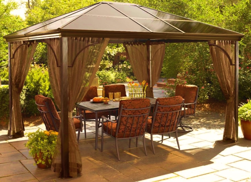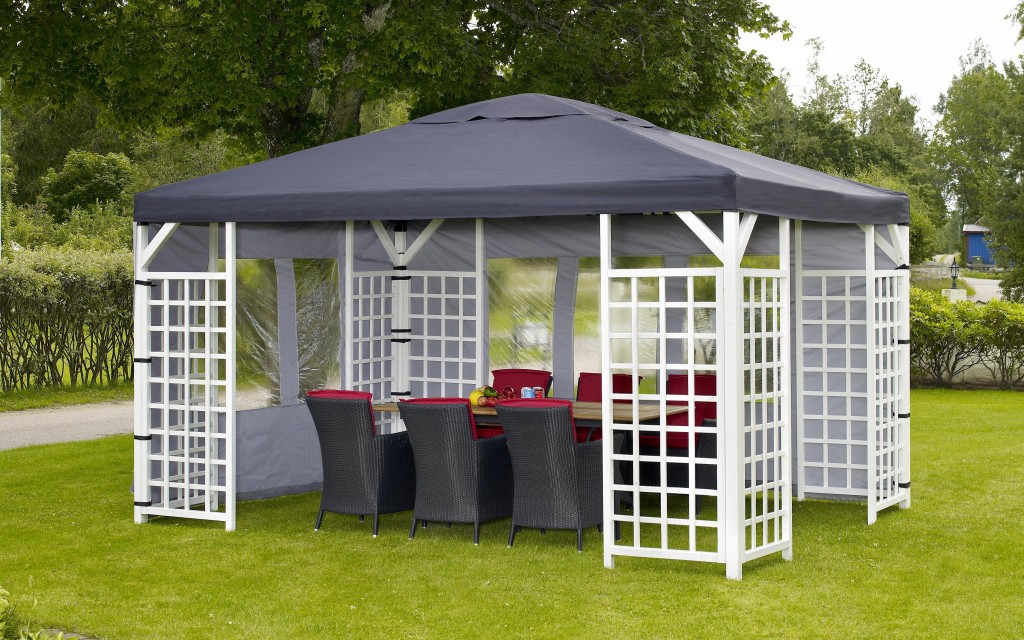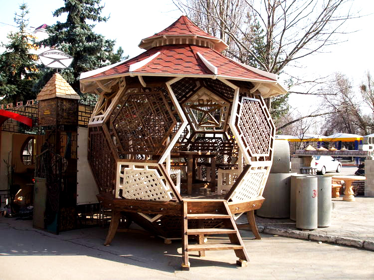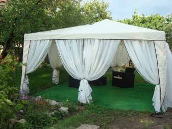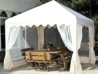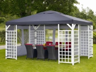 Was die Form betrifft, gibt es drei gängige Typen - rechteckig, hexagonal oder oktaedrisch. In letzter Zeit sind viel komplexere Formen zu sehen, und runde Pavillons sind auf einem speziellen Ständer befestigt, aber dennoch bleibt der Klassiker ein Klassiker, und Fans von einfachen geometrischen Formen werden nicht kleiner.