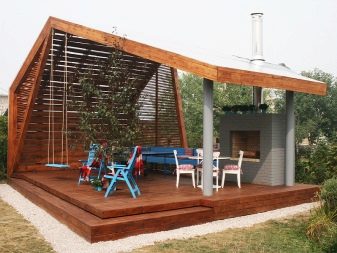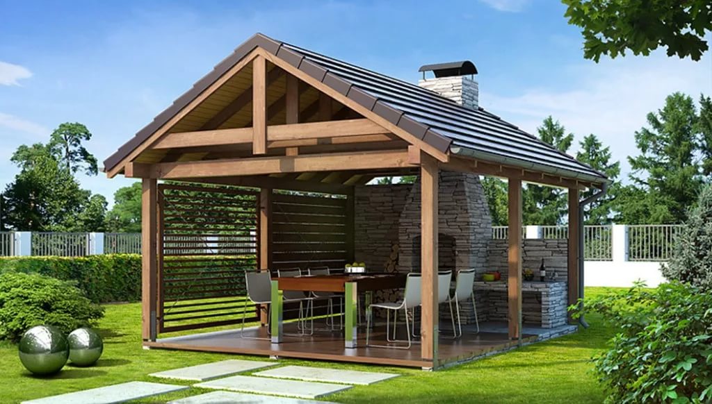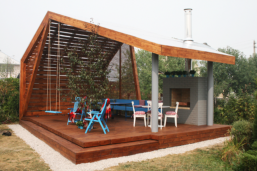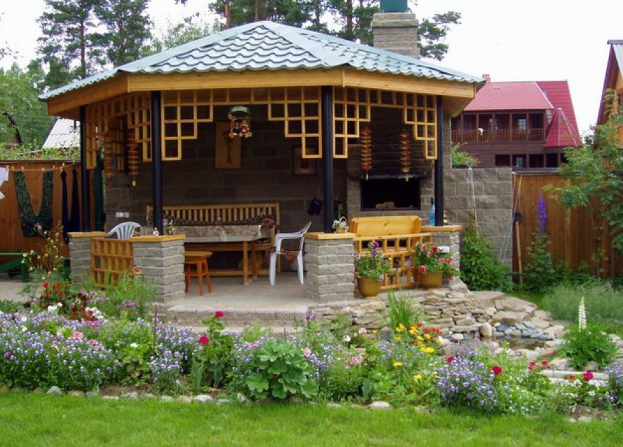 Kein Wunder, dass viele Leute einen Pavillon mit einem ruhigen, erholsamen Urlaub verbinden.mit einem Lieblingsbuch und einer Tasse Tee in den Händen, mit dem Geruch von Blumen und dem Gesang von Vögeln über seinem Kopf. Anfangs war es ein Ort der Einsamkeit, geheime Treffen, gemächliche Gespräche. Erst kürzlich erschienen Häuser, Pavillons, Grills, Grills und andere Gebäude, die für laute Zusammenkünfte von einer großen Firma bestimmt waren. Es ist vernünftiger, solche Gebäude in der Nähe des Hauses im Freigelände zu platzieren.