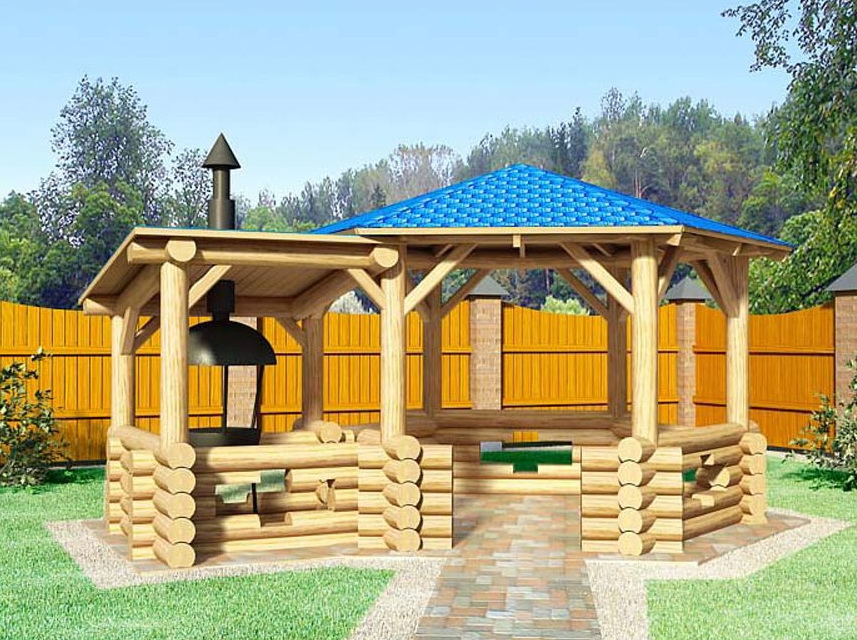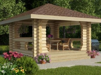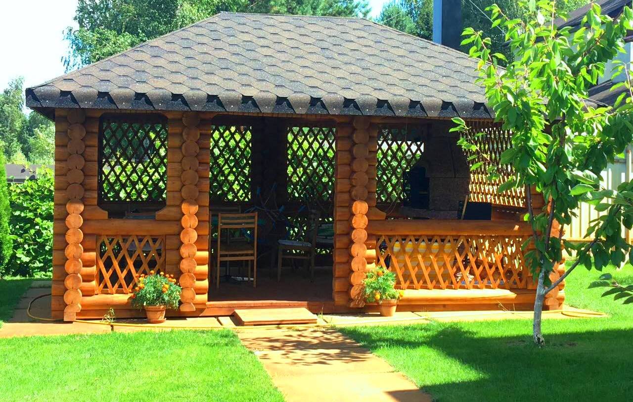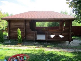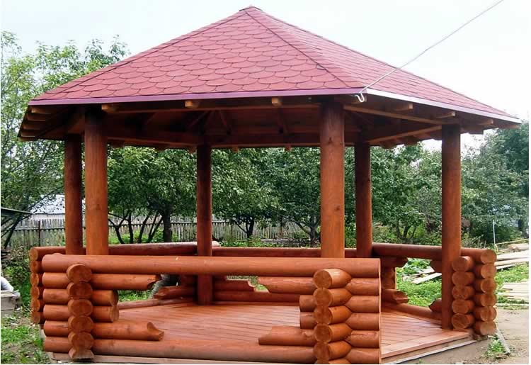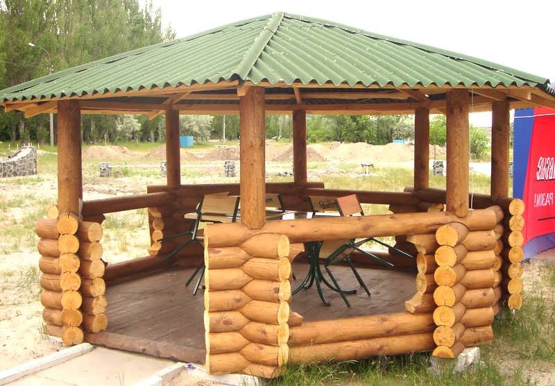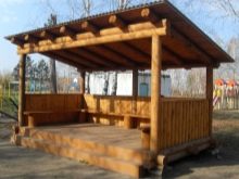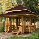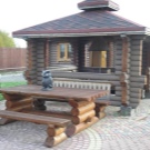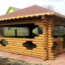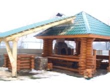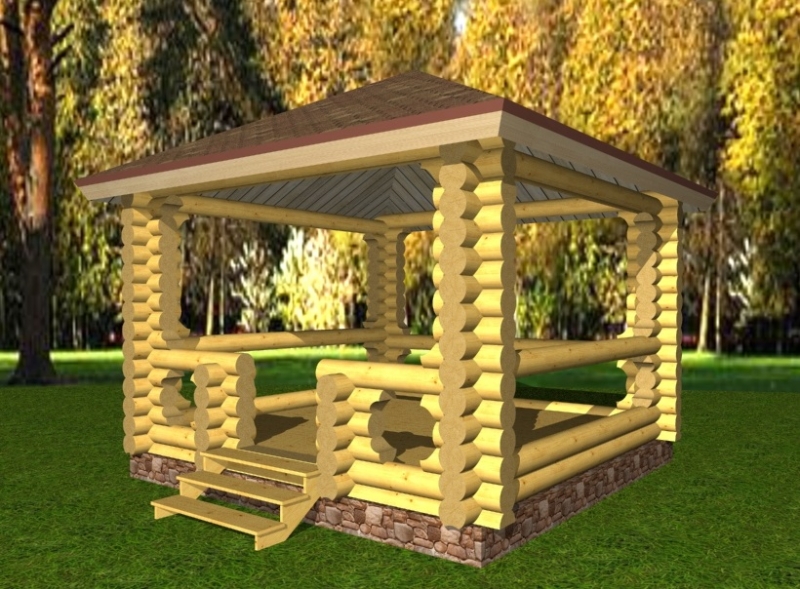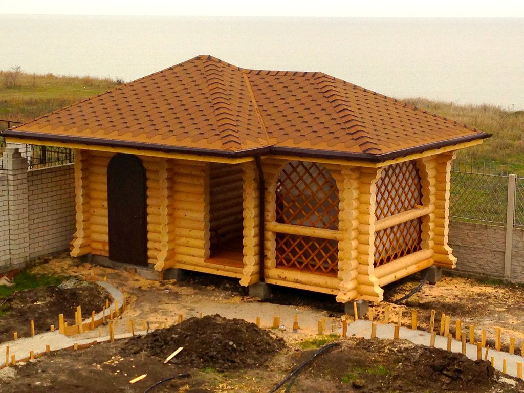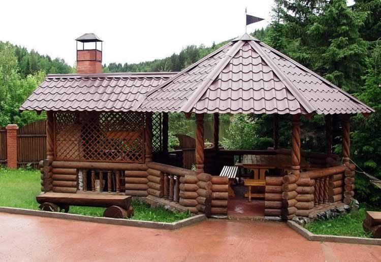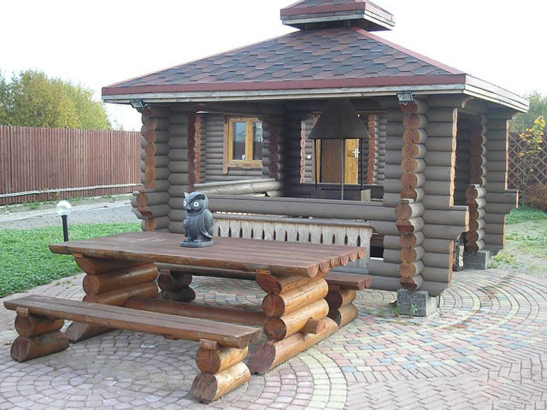 Es ist jedoch am besten, solche Gebäude aus einem Rundstamm zu bauen. Schließlich hat dieser Baumaterial eine ausgezeichnete Festigkeit und Haltbarkeit und verleiht dem Pavillon ein dekoratives Aussehen.