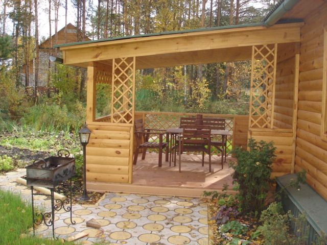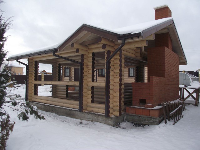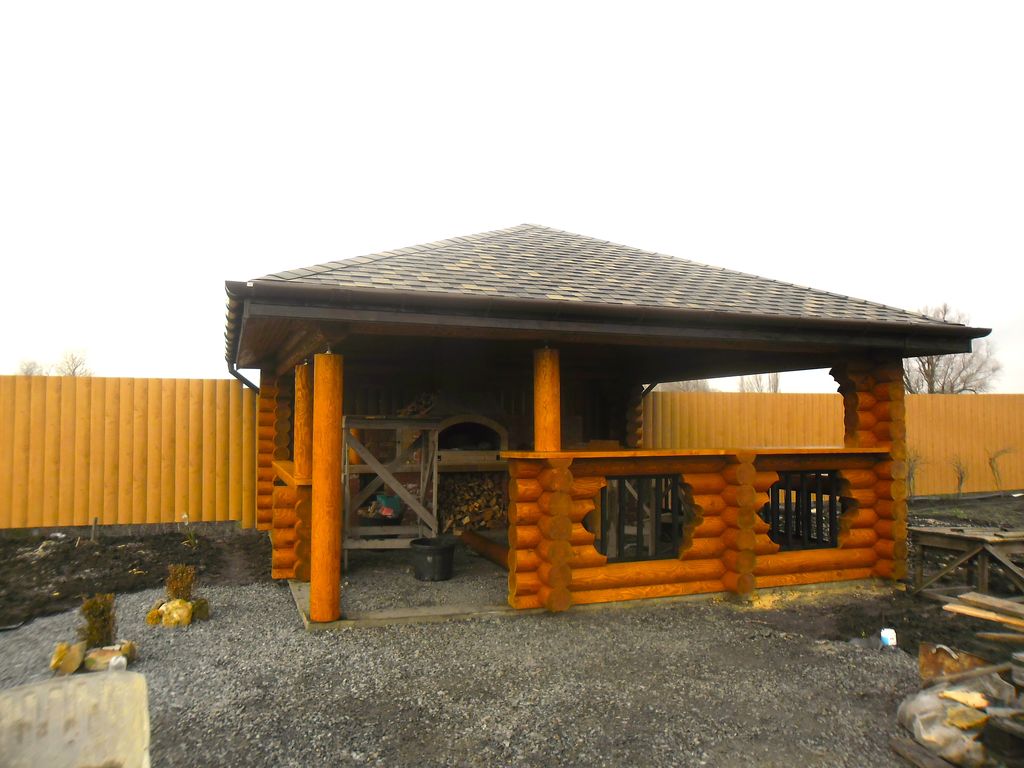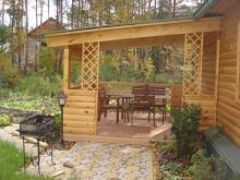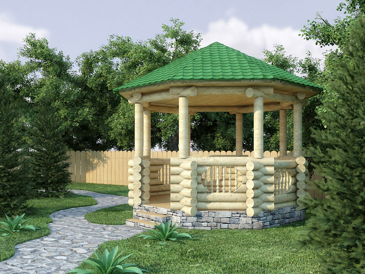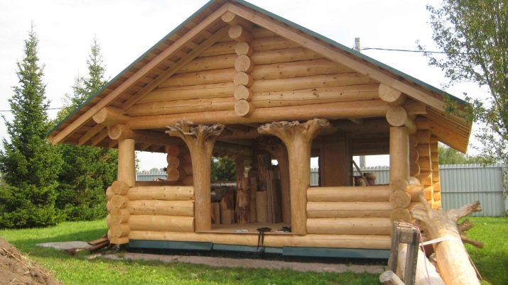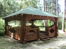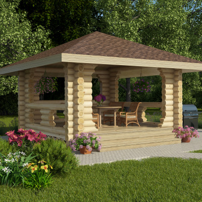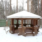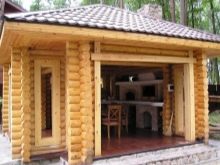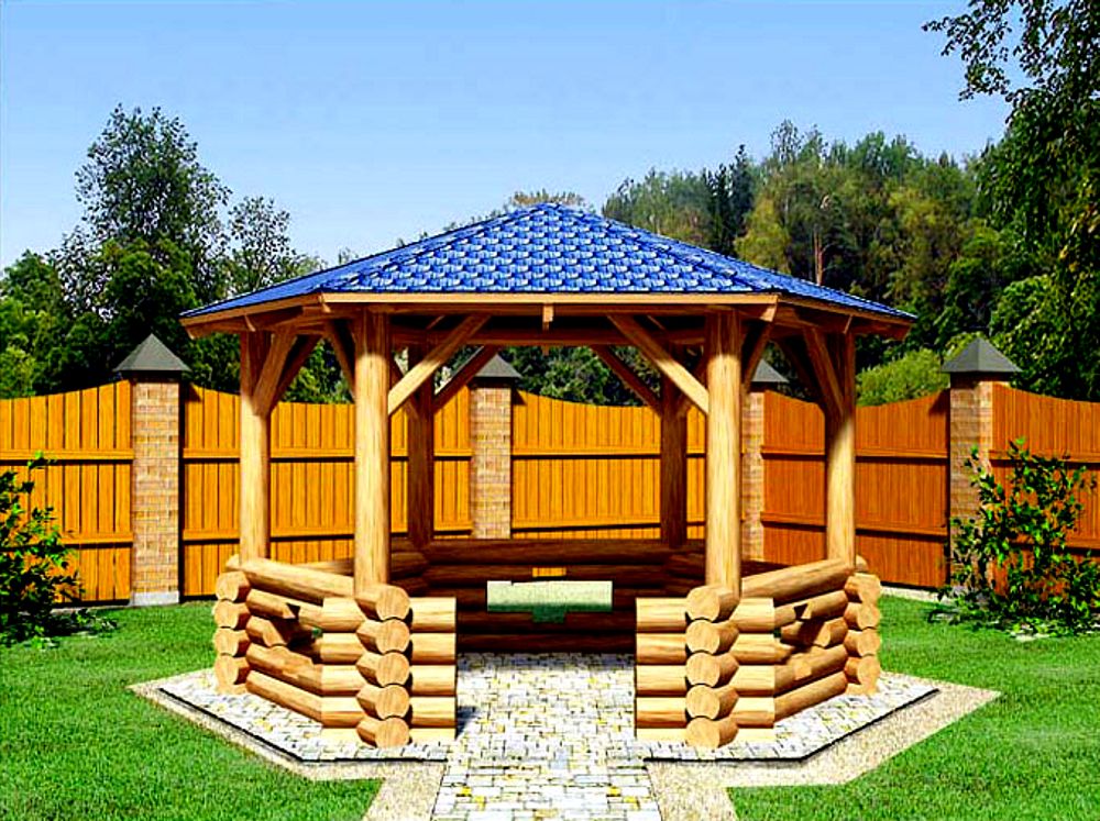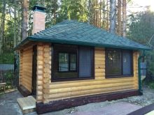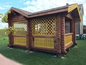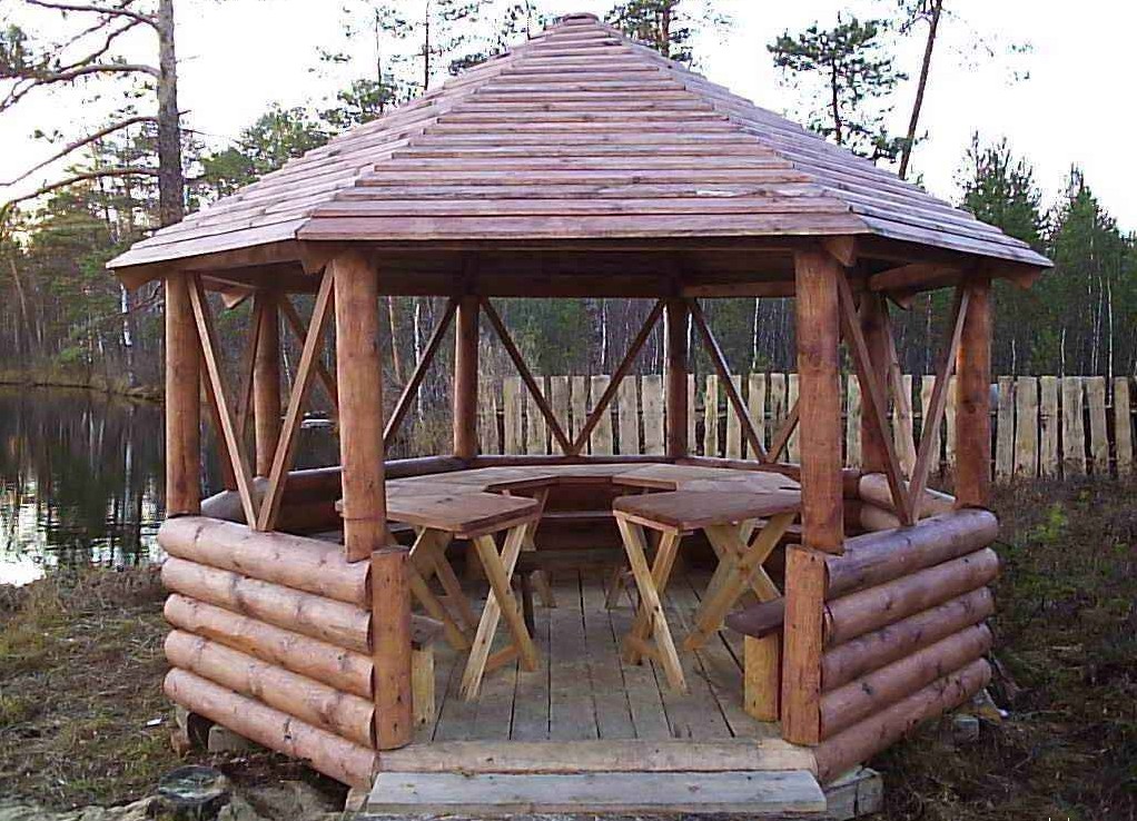 Es ist jedoch am besten, solche Gebäude aus einem Rundstamm zu bauen. Schließlich hat dieser Baumaterial eine ausgezeichnete Festigkeit und Haltbarkeit und verleiht dem Pavillon ein dekoratives Aussehen.