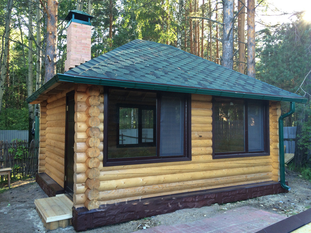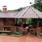 Bei der Anordnung des Daches in Pavillons, die aus Baumstämmen hergestellt wurden, werden in der Regel Schindeln, Ondulin oder Eurolat verwendet. In einigen Fällen kann als Baumaterial für die Anordnung des Daches ein professionelles Blatt verwendet werden.