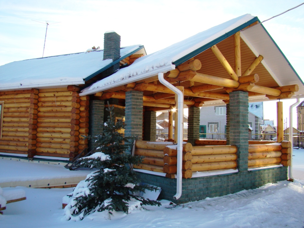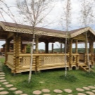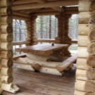 Der abgerundete Baumstamm ist ein sehr schöner Baumaterial.Es ist in der Lage, seine Struktur, natürliches Aussehen und dekorative Form auch nach langer Verarbeitung zu erhalten. Zylindrische Stämme werden häufig als Hauptbaumaterial für den Bau von Veranden, Terrassen und Lauben für Sommerhäuser verwendet, die kleine architektonische Formen sind.