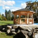 Holzpavillons aus großen Rundhölzern können unterschiedliche Größen, Formen und auch unterschiedliche funktionelle Eigenschaften aufweisen. Die häufigste geometrische Form dieser Strukturen ist ein Quadrat oder ein Rechteck. Dies liegt daran, dass Gebäude, die genau solche geometrischen Formen haben, am einfachsten zu bauen sind, vor allem, wenn Sie hierfür vorgefertigte Projekte verwenden.