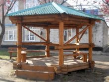 Im Großen und Ganzen ist die Laube aus Holzstämmen ein Landpavillon, der in der Freizeit genutzt wird. Solche Holzbauten sind in Zentralrussland sehr beliebt. Ein solches Gebäude kann mehrere Probleme lösen: