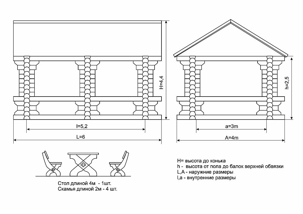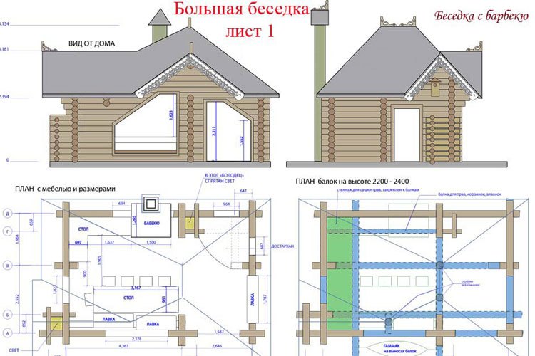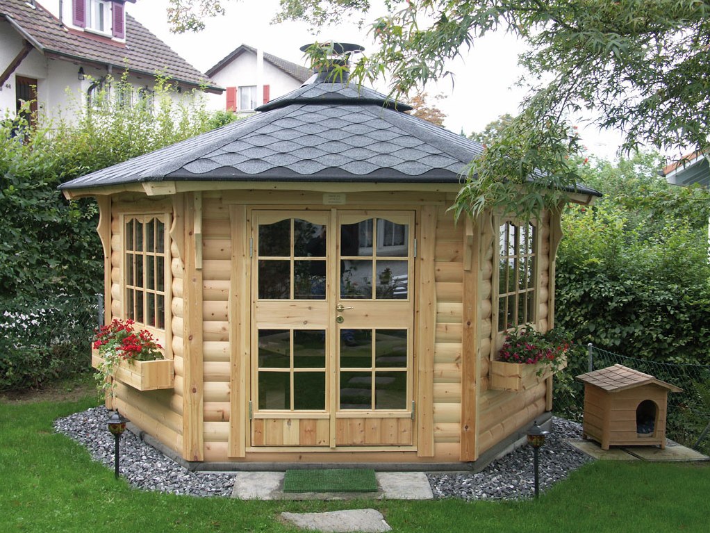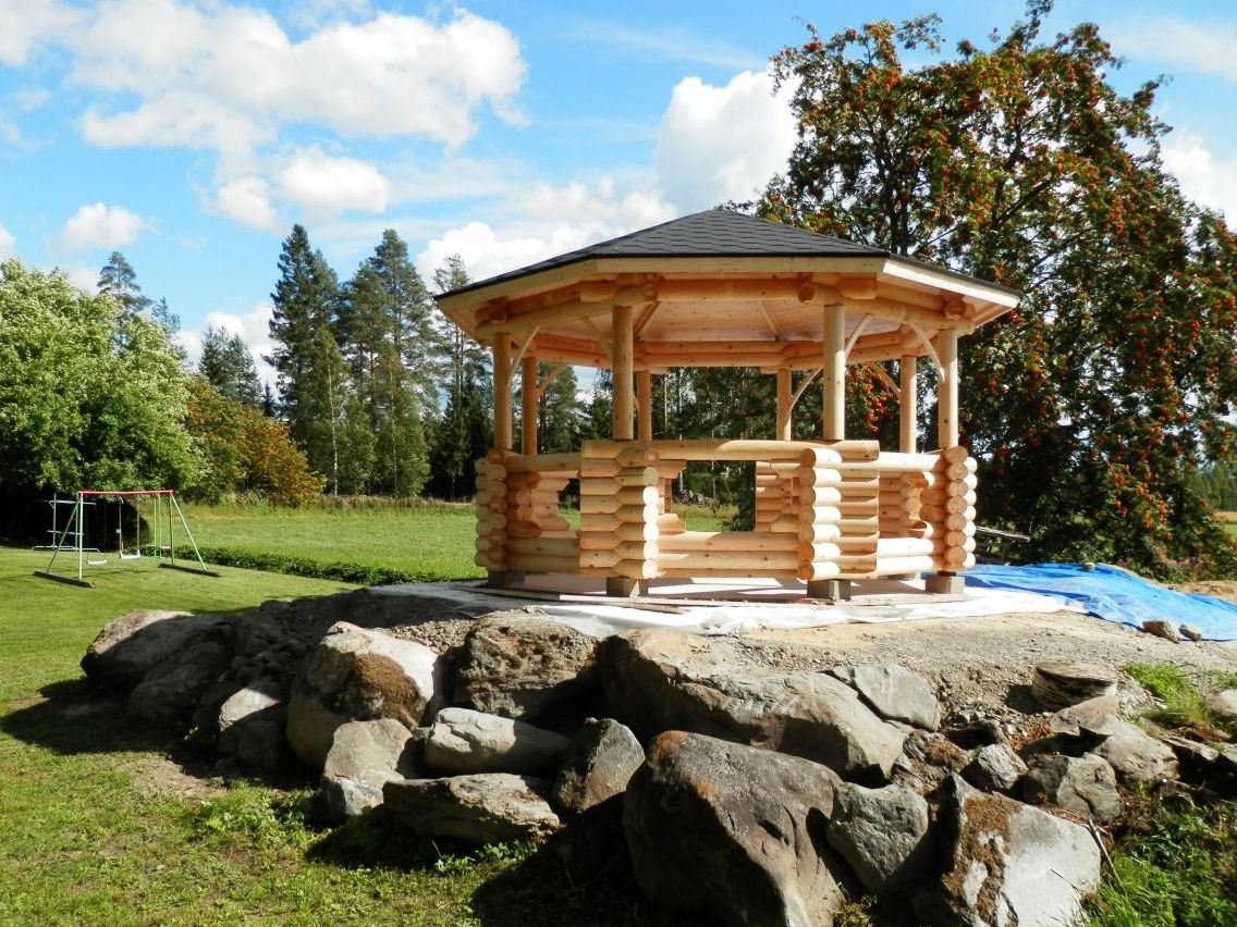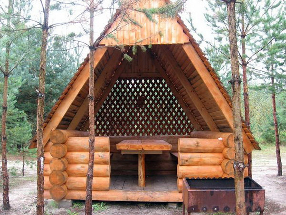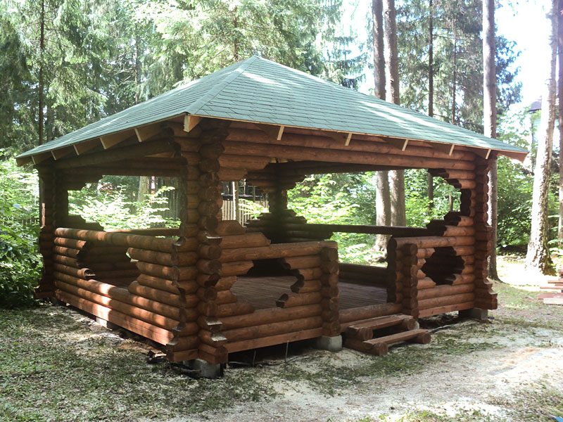 In den offenen Lauben, die aus einem Rundholz gebaut sind, können in der Regel nur Tische, Stühle oder Bänke aufgestellt werden. Wenn jedoch viel Freiraum im Gebäude ist, kann man im Inneren zusätzlich einen Platz für einen Grill oder eine Räucherkammer bauen.