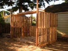 Holzpaletten für den Transport von Paletten mit allen Arten von Ladung haben seit langem ein gesteigertes Interesse bei den Sommerbewohnern und bei den Personen, die in der Privatwirtschaft leben, geweckt. Und das ist nicht überraschend - schließlich werden diese Produkte in fähigen Händen zu einem vollwertigen Baustoff. Die Kosten solcher gebrauchten Paletten sind einfach lächerlich und es passiert, dass sie im Allgemeinen kostenlos abgegeben werden. Was von ihnen gerade nicht entwerfen: und Gartenhäuser und Zäune und Pavillons von verschiedenen Stilen. Alles wird nur durch die Flucht der Fantasie und den Wunsch, etwas auf Ihrer Landseite zu gestalten, begrenzt.
