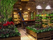 Um Komfort und Schönheit gebaut Pavillon zu bieten, können Sie eine Vielzahl von Techniken verwenden. In den Hohlräumen der Paletten können Sie Blumenbeete machen, schöne Laternen bauen, so dass sanftes unauffälliges Licht aus den Lichtungen kommt. Es sieht sehr faszinierend aus, als wären die Wände von innen beleuchtet, während die Leuchtmittel selbst nicht sichtbar sind.
