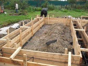 Für lockere Böden und große Pavillons müssen Sie das Band füllen. Für die Einrichtung dieser Art von Fundament um den Umfang ist es notwendig, einen Graben mit einer Tiefe von 50 Zentimetern zu graben und eine Schalung von den Brettern entlang seiner Ränder zu installieren. Weiter im Graben der Bewehrung wird die Konstruktion und der Beton gegossen, gemischt mit kleinen Steinen.