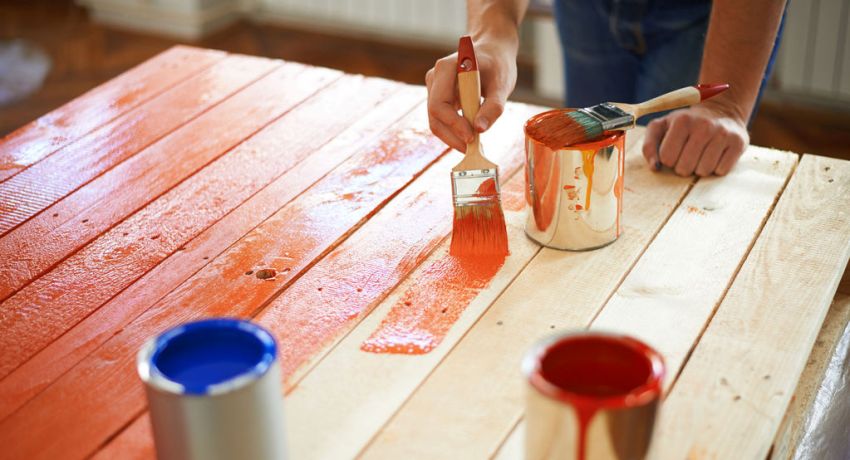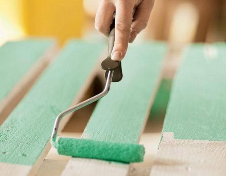 Nachdem der Pavillon fertig ist, muss sie eine schöne Erscheinung geben. Malen Sie die gewünschte Farbe. Wurden die Paletten und Planken in der Vorbereitungsphase gestrichen, so ist es notwendig, etwas zu lackieren, das nicht lackiert ist, zum Beispiel vertikale Stützen.