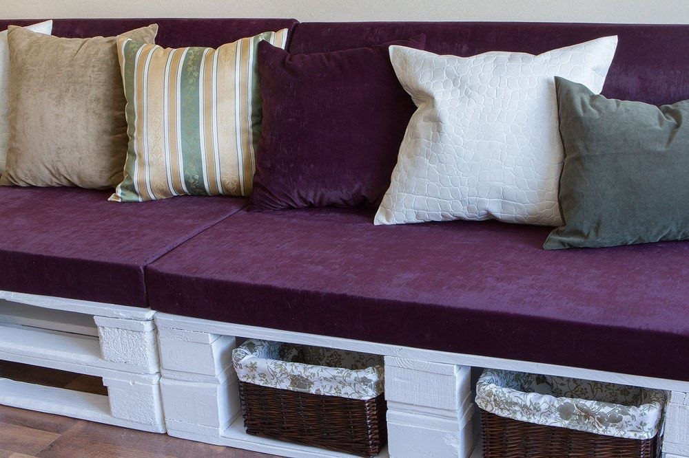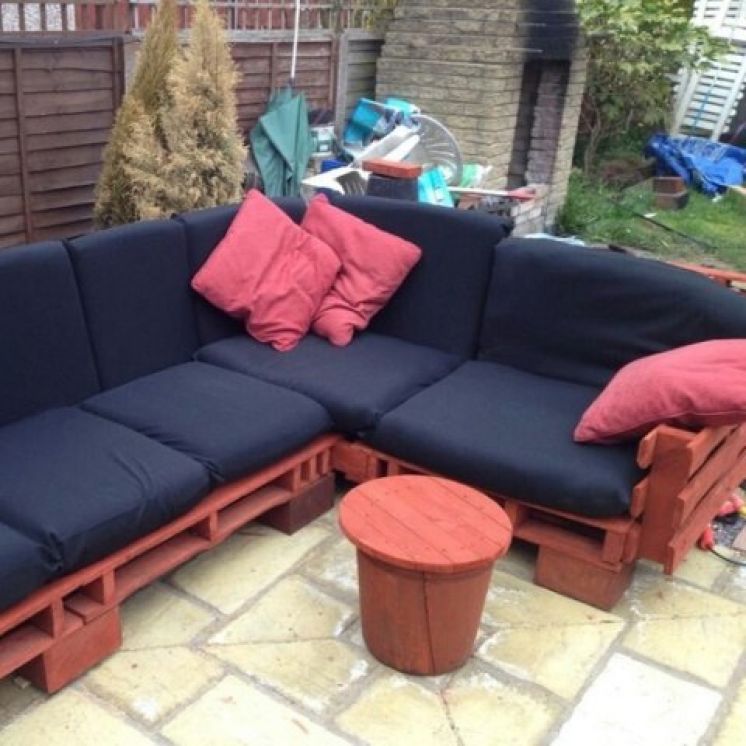 Ecksofa gebaut werden ist auch nicht sehr schwierig. Die erforderliche Anzahl von Paletten wird genommen und in dem erforderlichen Bereich übereinander gelegt, und um den Rücken herzustellen, müssen Sie mehrere Paletten vertikal stellen, den gewünschten Neigungswinkel wählen und fixieren, und der durch die Neigung gebildete Spalt zwischen Sitz und Rücken kann durch die Platte geschlossen werden.
