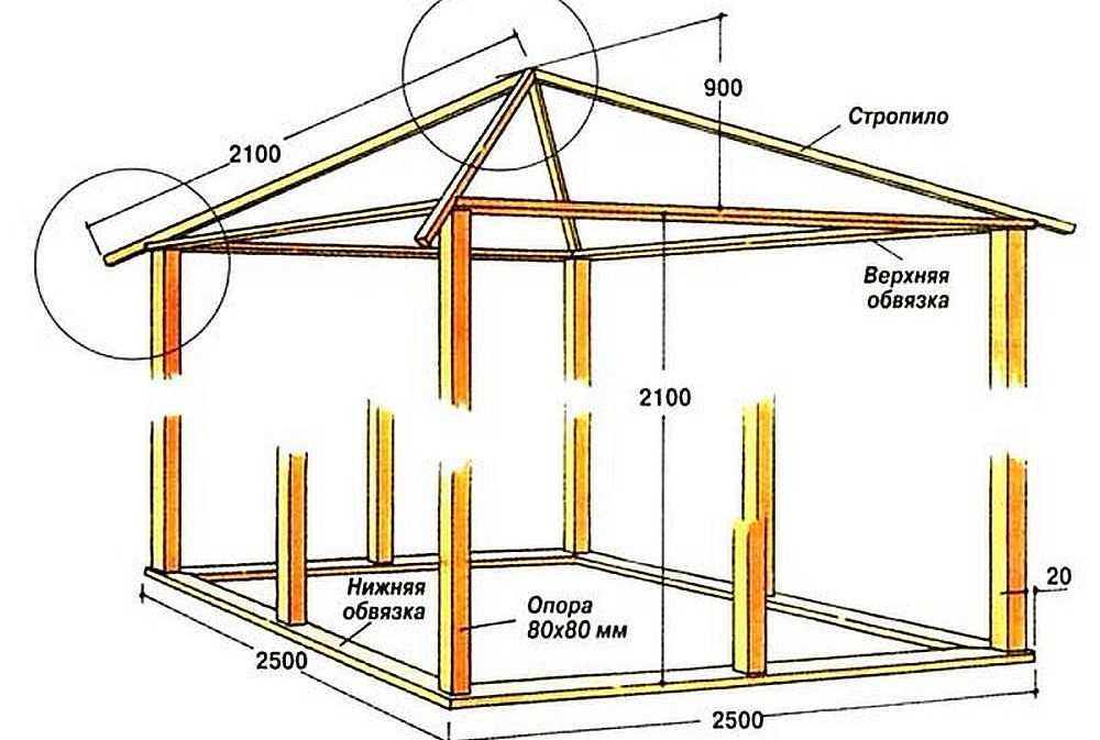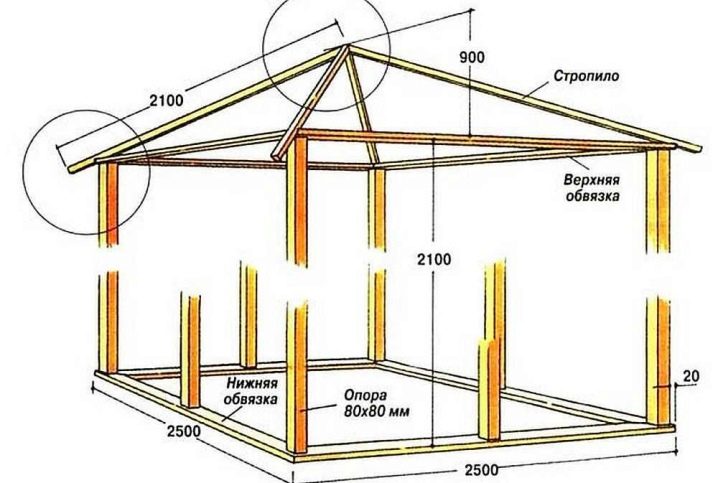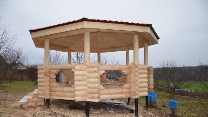 Das Dach kann aus mehreren Arten hergestellt werden: Single, Giebel oder Chetyrekhskatnuyu in Form einer Pyramide. Welche zu tun ist, hängt von der Gestaltung des Pavillons und von persönlichen Wünschen ab.