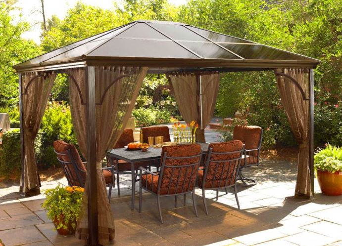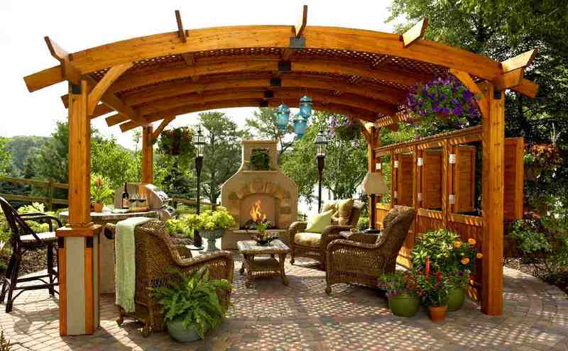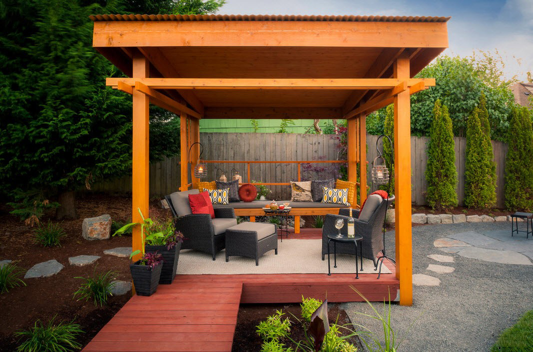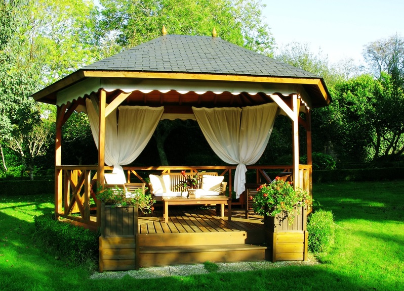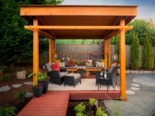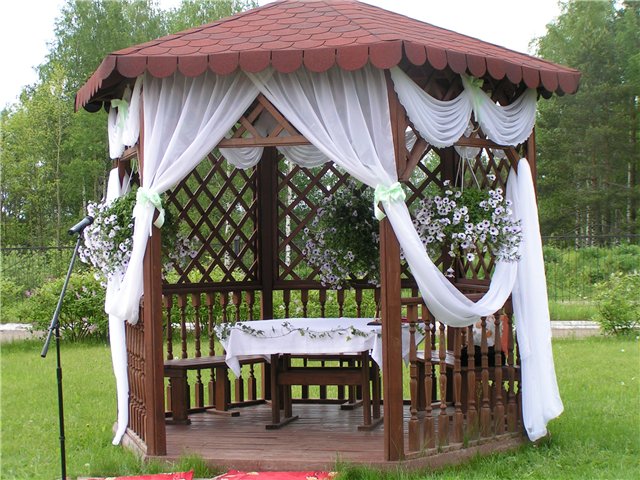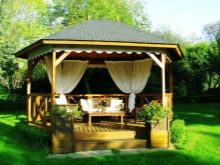 Für einen komfortablen Sommerurlaub in einem Landhaus empfehlen die Designer die Installation eines Sommerpavillons, der nicht nur den Gartenbereich schmückt, sondern auch ein beliebter Ort der Entspannung für alle Familienmitglieder ist. Eine breite Palette von Arten und Formen von Strukturen ermöglicht es, die Struktur harmonisch in die Gesamtgestaltung des Vorstadtbereichs zu integrieren, und eine große Auswahl an Baumaterialien für die Herstellung eines Gartenpavillons ermöglicht es, die geplante Menge an Geld auszugeben.