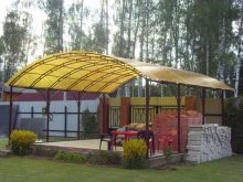 Vorteile - einfache Installation, die Schaffung eines einzigen Raumes mit der umgebenden Natur, zuverlässiger Schutz vor Niederschlägen. Nachteile - Luftströmung, Betrieb nur im Sommer, ungehindertes Eindringen von Insekten.
