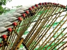 - Japanisch - Walmdach an den vertikalen Stäben, dekoriert mit ethnischen Stoffen und Papierdekorelementen;