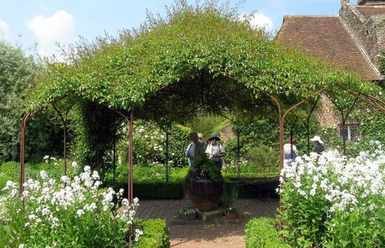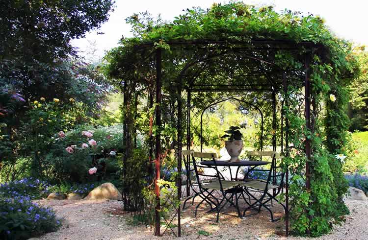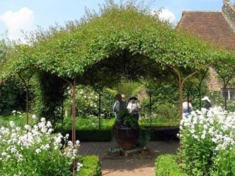 - Ein Luftbaldachin in der Mitte des Sommergartens wird an heißen Sommertagen eine beliebte Ruhestätte sein, und grüne, in Säulen gehüllte Reben und ein Dach werden das Design zu einem einzigen Ganzen mit der einzigartigen Schönheit der Natur machen.