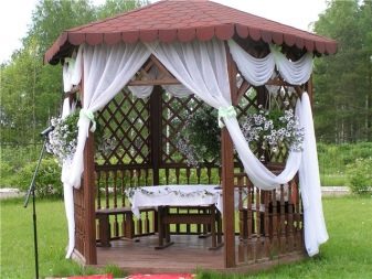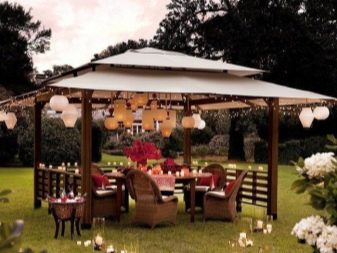 Pavillon - eine universelle Einrichtung für den Sommerurlaub, erlaubt, alle Designprojekte der Eigentümer des Hauses zu verwirklichen. Moderne Designer bieten neue Lösungen in der Gestaltung dieses Designs, die sich von den Standard- und klassischen Versionen unterscheiden. Auf den Parzellen von Landhäusern finden sich immer häufiger ungewöhnliche Formen von Pavillons, Sondergrößen und neue Baustoffkombinationen.