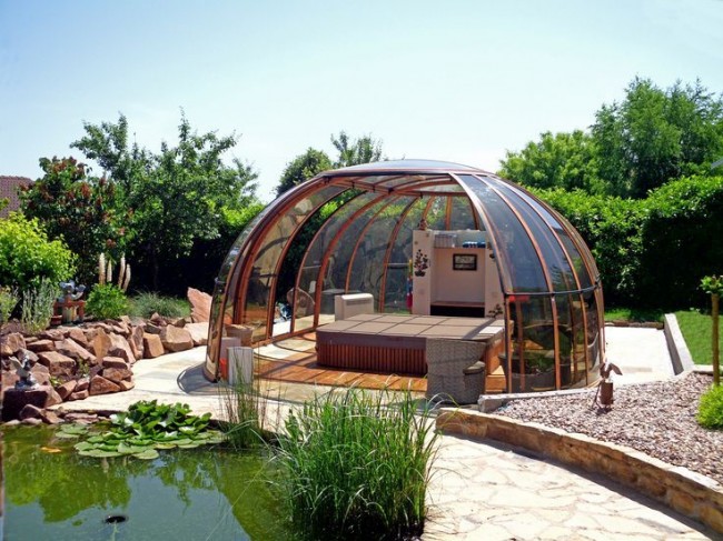 Geschlossen - freistehende Gebäude mit Öfen, Fenstern und Türen, die zu jeder Jahreszeit für Ruhe und Aufenthalt genutzt werden. Dieser Typ hat eine komplexe Struktur und hohe Kosten.