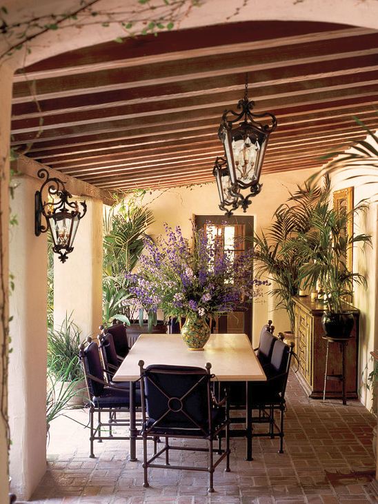- Französisch - helle und luftige Laube, mit Holzbalken ausgekleidet;
