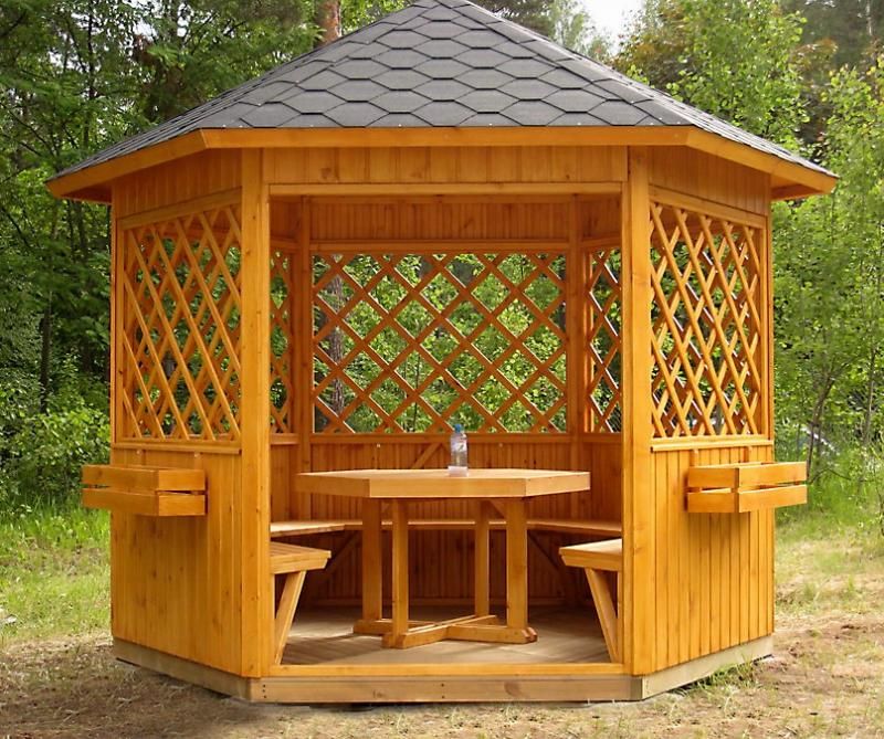 Die Größe des Pavillons hängt von der Anzahl der Personen ab, die eine Erholung im Freien planen. Für eine Person ist es notwendig, 2 m2 Fläche zur Verfügung zu stellen, und die optimale Höhe sollte nicht weniger als 2 m betragen.