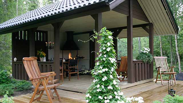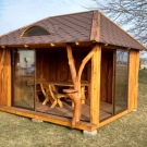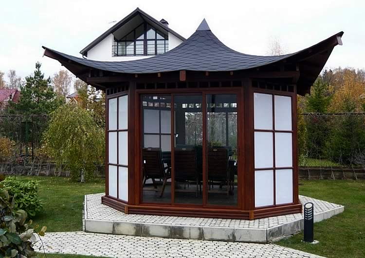 In einem geschlossenen und beheizten Pavillon können Sie sich nicht nur in der warmen Jahreszeit, sondern auch in kühleren Jahreszeiten gut erholen. Natürlich kostet der Bau einer solchen Struktur mehr, aber sie können das ganze Jahr über genutzt werden.