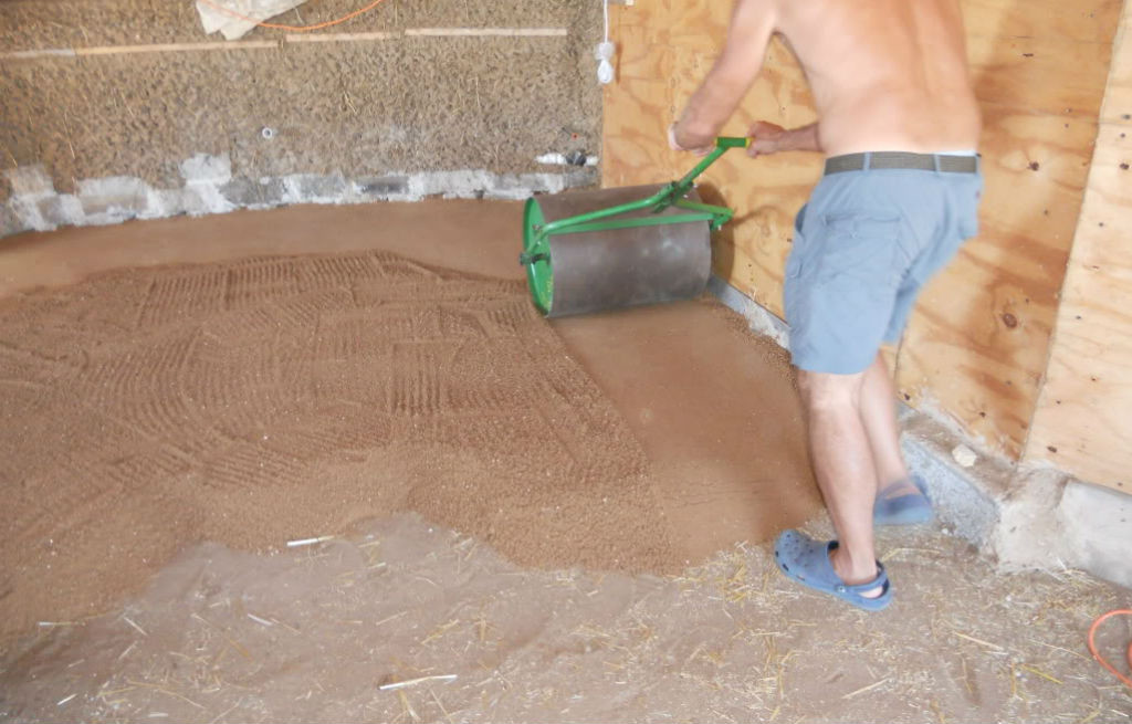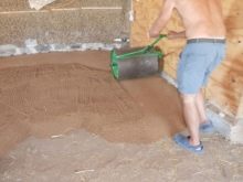 Bevor Sie den Lehmboden verlegen, müssen Sie den Boden richtig stopfen und ihn so weit wie möglich ausrichten. Dann wird Kies oder Schotter von oben eingefüllt (die Schichtdicke sollte 3-4 cm betragen). Danach wird der sogenannte "Teig" aus Strohhacken, Wasser und Ton hergestellt. Die resultierende Lösung wird mit einer Schicht von 7-8 cm auf die Basis gelegt.Wenn die erste Schicht trocknet, können Risse auftreten, aber Sie müssen keine Angst davor haben - Sie müssen sie mit den Resten der vorbereiteten Masse abdecken.