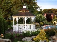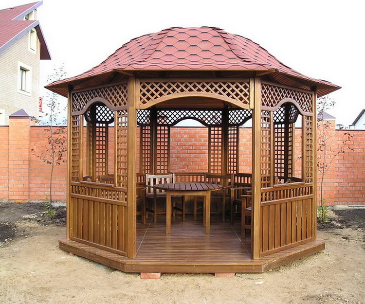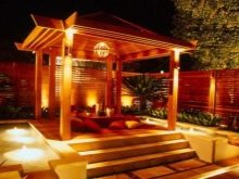 Zum Pavillon, der interessant und stilvoll aussieht, können Sie den Rat von Experten verwenden und es in einem der unten präsentierten Stile ordnen.
