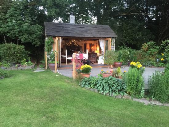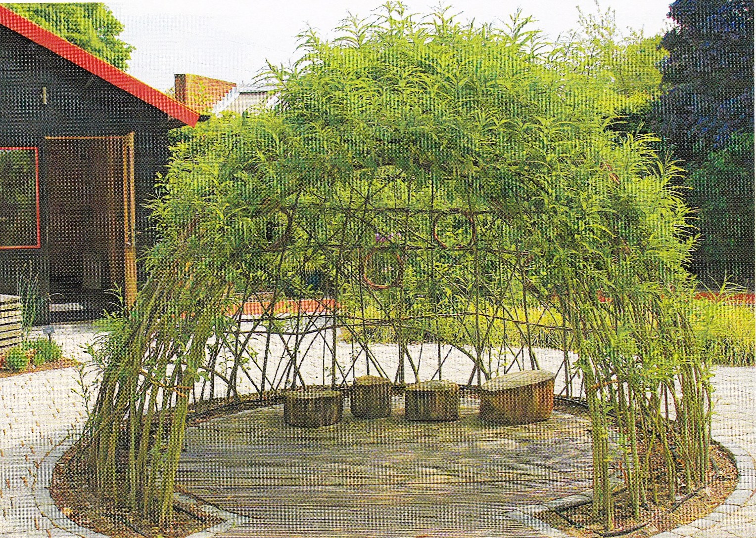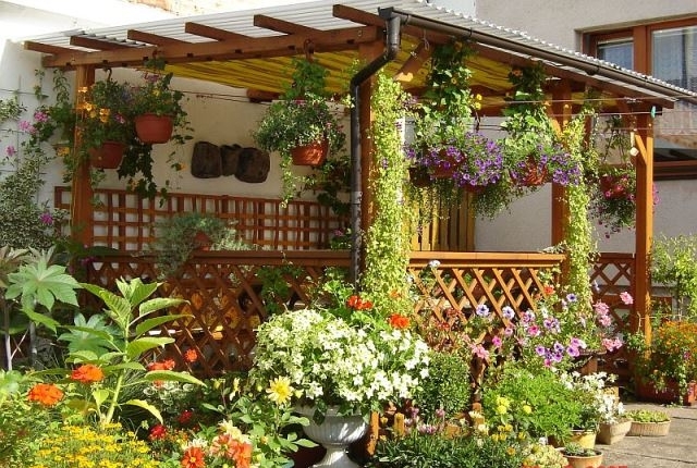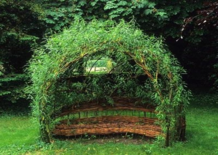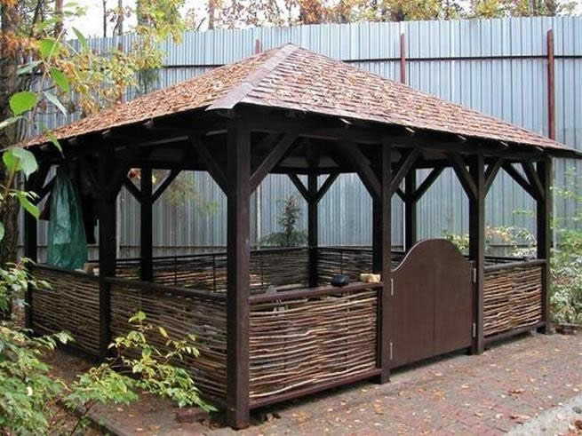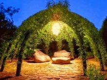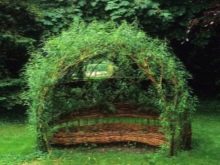 Viele Hausbesitzer wählen heute die originalen "lebenden" Pavillons. Solche Strukturen bestehen aus natürlichen Materialien - Wimpern, Ästen und anderen blühenden Pflanzen.