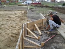 - Der nächste Schritt wird die Herstellung von Holzschalungen sein - sie muss an den Rändern der vorbereiteten Grube befestigt werden;