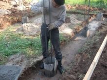 - Wie bei einem monolithischen Fundament müssen Sie zuerst einen Graben graben (die Vertiefung sollte nicht mehr als 50 cm betragen);