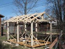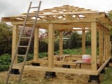 - dann müssen Sie auf die Pfosten Schnitte 40x100 mm tun - sie sind nützlich für die Installation von Sparren;