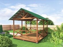 Im privaten Bereich finden sich oft offene Pavillons. Solche Designs gelten als die einfachsten und einfachsten. In der Regel sind sie leicht gebaut, so dass Sie sie auch in kleinen Bereichen sicher bauen können.