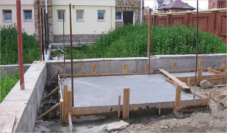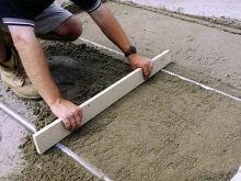 - Der nächste Schritt wird sein, die Betonlösung zu gießen, aber es ist eine Überlegung wert, dass die Dicke nicht mehr als 15 cm betragen sollte;
