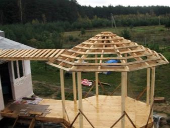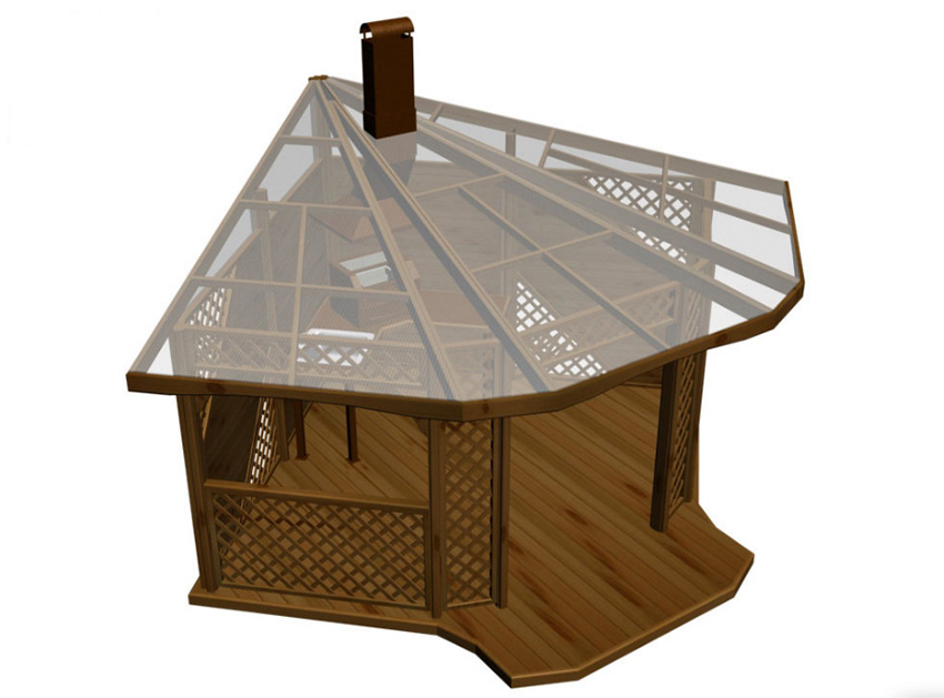 Für einen ungewöhnlichen Pavillon mit einem komplexen und komplizierten Design können Sie ein originelles Multi-Skid-Dach bauen. Es wird härter gemacht, sieht aber toll aus.