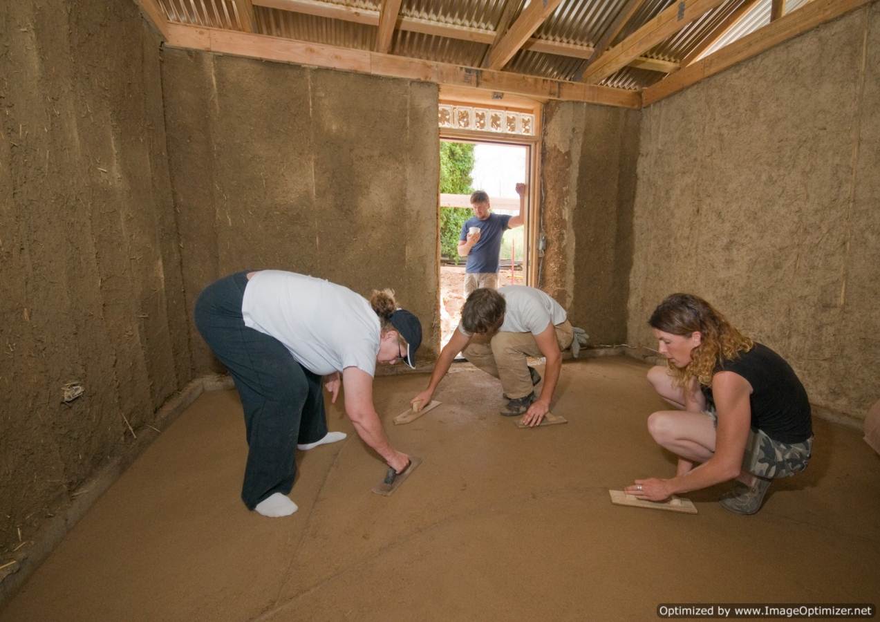 Auf den ausgehärteten Boden sollte eine Kalk-Ton-Zusammensetzung in einer dünnen Schicht aufgetragen und dann abgewischt werden, so dass die Beschichtung feuchtigkeitsbeständig ist.