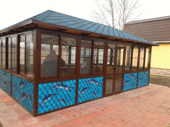 Eine weitere Besonderheit solcher Strukturen ist, dass sie verglast werden können. Infolge solcher Verbesserungen, nicht nur sehr schöne und originelle, sondern auch sehr bequeme Gebäude, die Anwesenheit, in der zu jeder Zeit des Jahres viel Vergnügen gibt.