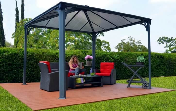 - Der Hauptnachteil der meisten Pavillons ist, dass sie sich sehr erwärmen, wenn sie Sonnenlicht ausgesetzt sind. Aus diesem Grund ist es nicht immer angenehm, in ihnen zu sein.