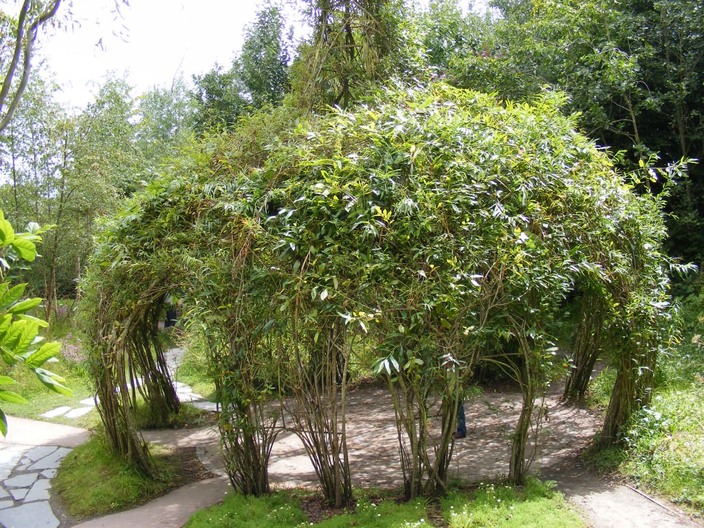 Es gibt Fälle, in denen die "lebende" Laube aus dichteren und stärkeren Pflanzen besteht. Für diese wird der Metallrahmen nicht benötigt, da sie bereits eine bestimmte Form ohne Probleme halten.