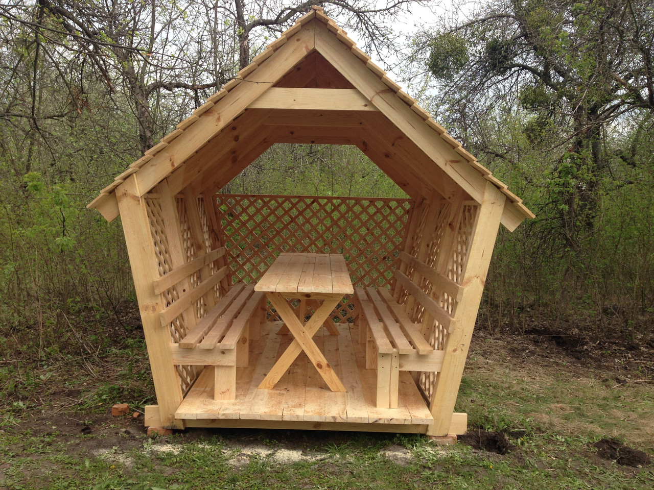 Wie man einen Pavillon mit eigenen Händen macht, sehen Sie das nächste Video.