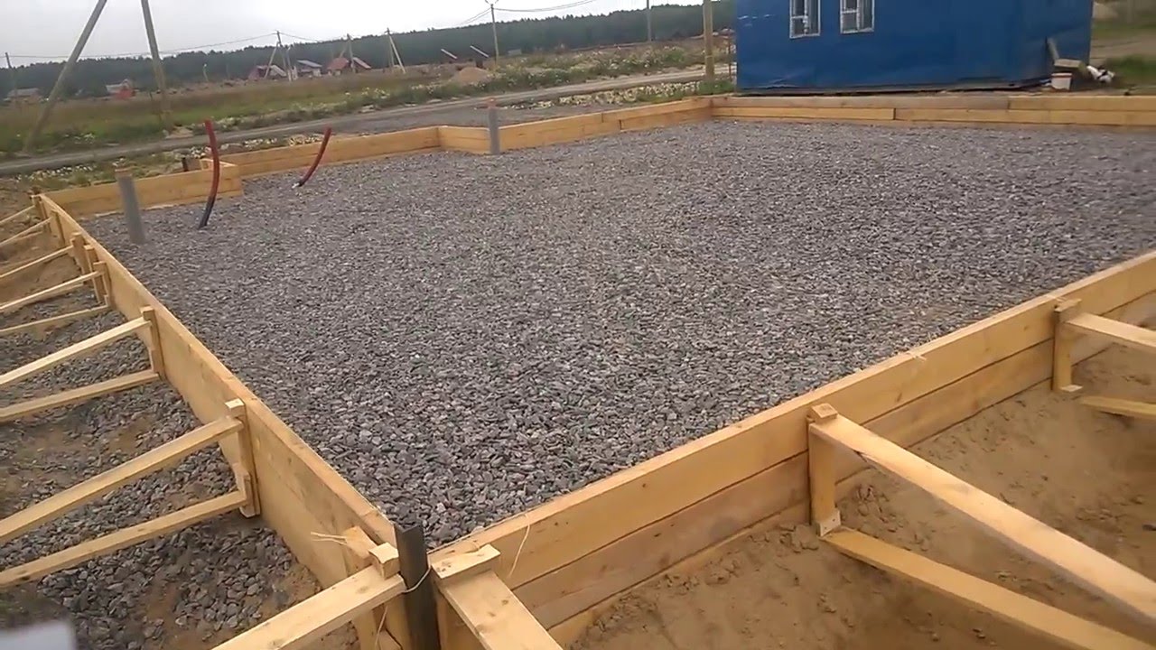 - es ist notwendig, zerkleinerte Steine im inneren Teil der Schalung zu füllen - seine Schicht sollte ungefähr 5 cm sein;