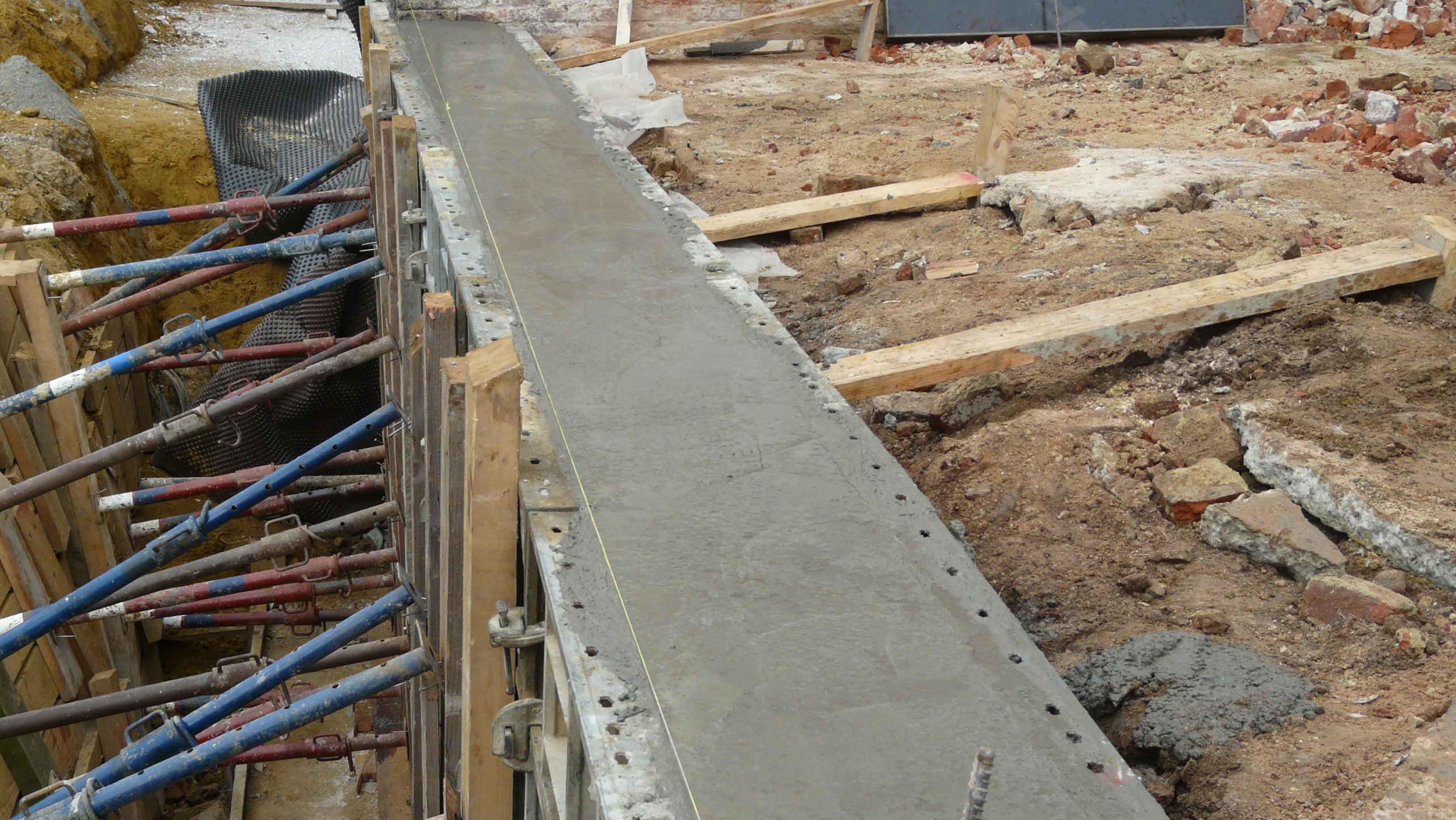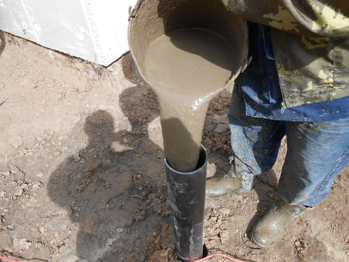 - In der letzten Phase wird Beton oder Zement-Sand-Mörtel in die Grube gegossen.