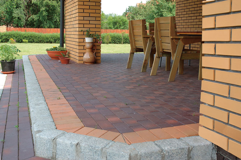 Der Boden im Pavillon kann mit Pflasterplatten beschnitten werden. Es bleibt ziemlich mühsam, aber viele Meister wählen es immer noch.
