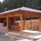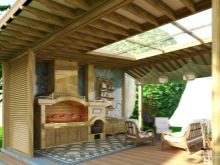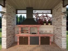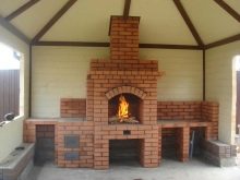 - Traditionell, in den Pavillons stellen Sie einen tragbaren oder stationären Grill her. Um zu sparen, wird einem tragbaren Kohlenbecken oft ein bestimmter Platz zugewiesen und er wird mit Ziegelsteinen gefliest. Vielleicht die Kombination aus Grill und Räucherkammer, sowie Barbecue und Barbecue - dann braucht man neben Spieße auch einen Eisengrill zum Braten von Fleisch.