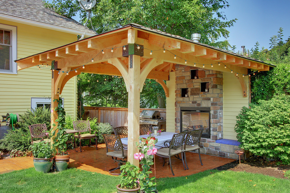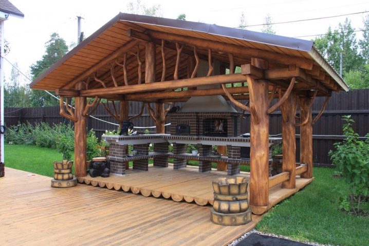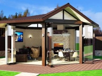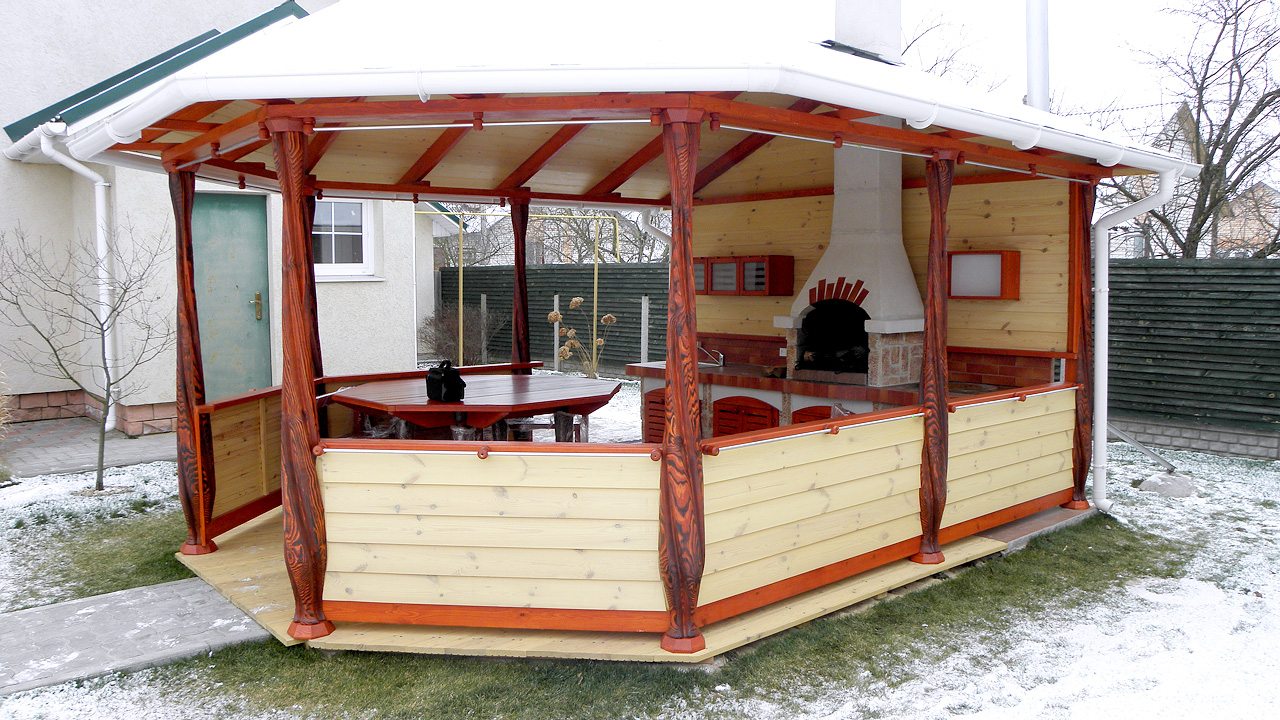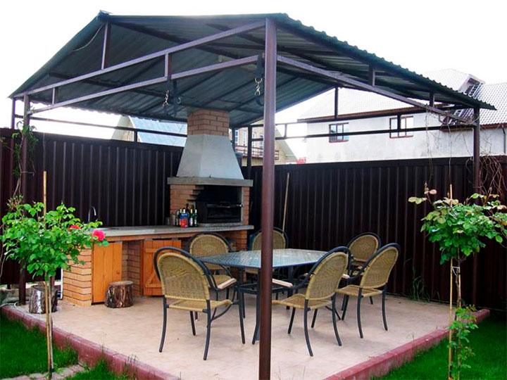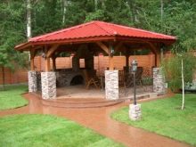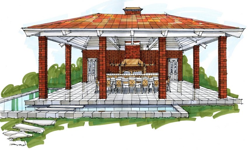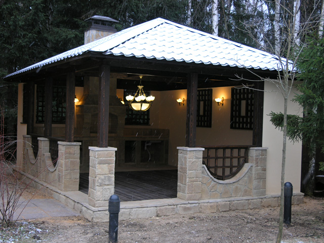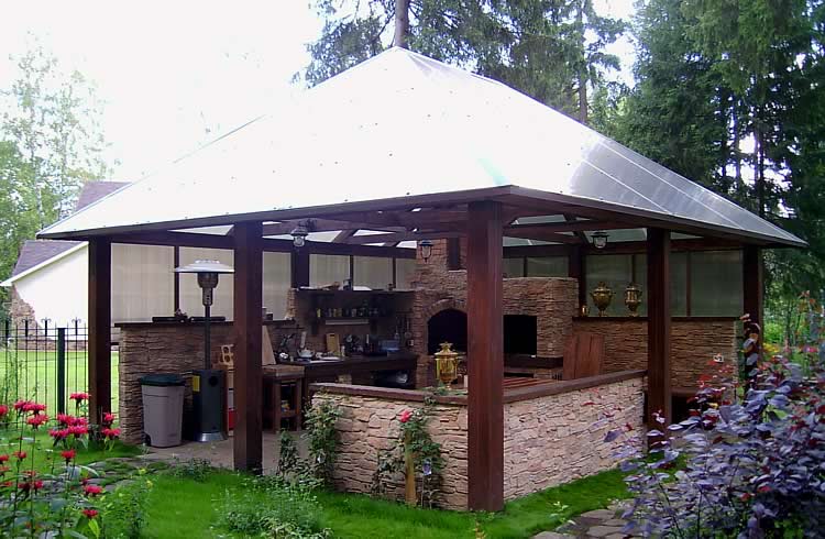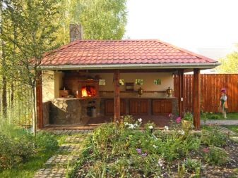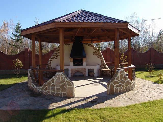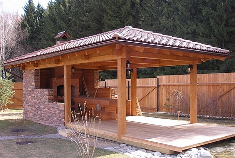 An schönen Tagen möchten Sie ins Grüne gehen, frische Luft schnappen und lecker gegrilltes Fleisch auf dem Grill oder Grills kochen. Es ist durchaus möglich, das Geschäft mit dem Vergnügen in Ihrem eigenen Sommerhaus zu verbinden, indem Sie einen Pavillon mit Grill, Herd oder Grill bauen.