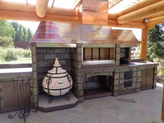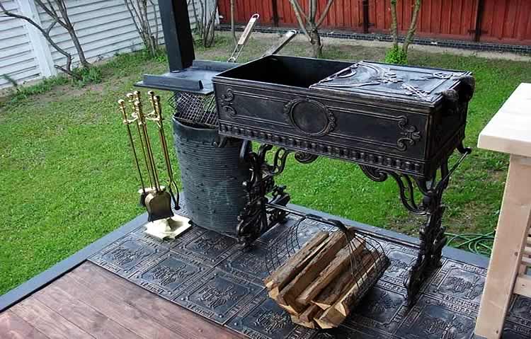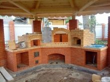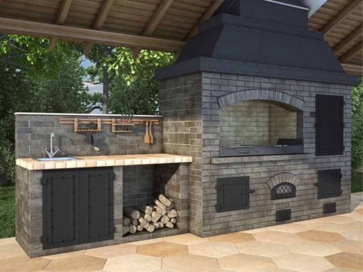 - Wenn es das Geld zulässt, sollten Sie auf den Fertigteil-Ofenkomplex achten, der sofort mehrere Funktionen umfasst: eine Kohlenpfanne und eine Räucherei, einen Grill und einen Kessel, ein Kohlenbecken und einen Grill.Das Kit enthält Elemente wie ein Waschbecken und einen Kochtisch. Es ist die beste Wahl für geräumige Pavillons und große Unternehmen.