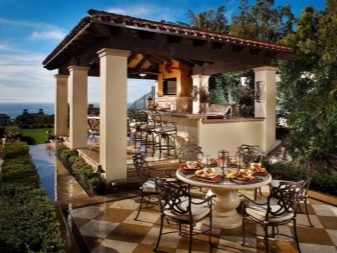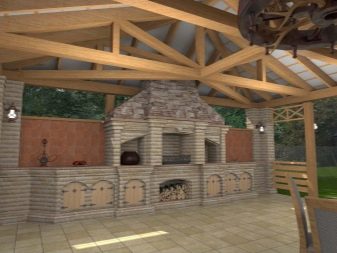 Wenn Sie den Grill, den Ofen und das Barbecue im Pavillon einstellen, müssen Sie berücksichtigen, dass alle Elemente in der Nähe eines offenen Feuers sind. Daher sollten Sie sich für zuverlässige, feuerfeste und hitzebeständige Materialien entscheiden.
