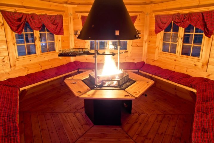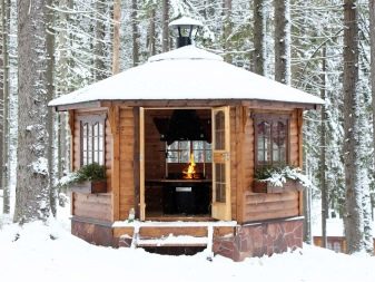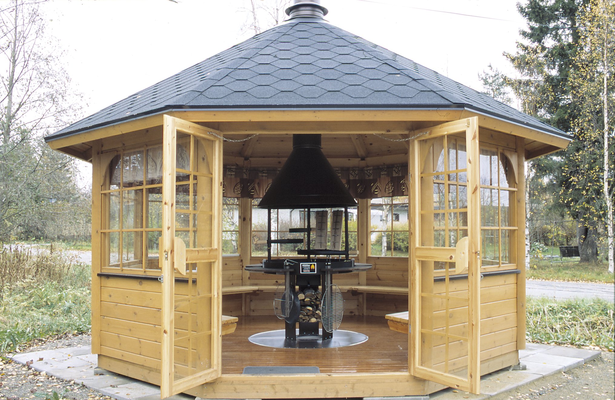 - Finnisch sechs oder oktaedrisch, auch Grillhaus genannt, wird Liebhaber von Land Ruhe ansprechen. Die Verarbeitung aus natürlichen Materialien erfordert keine zusätzliche Bearbeitung, Hirschleder und Wanduhren schaffen eine besondere Umgebung. Nun, Textilien in Form von Servietten, Tischdecken und Vorhängen schaffen eine gemütliche Atmosphäre.