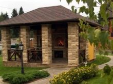 Die Wahl des Materials für den Bau eines Gazebo mit Ofen hängt von den ästhetischen Vorlieben der Grundbesitzer und ihren finanziellen Möglichkeiten ab.
