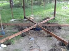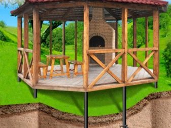 Für Pavillons mit Grill und Barbecue entwickeln Projekte für Stiftungen. Die Verwendung eines Pfeilerfundaments wird oft vorausgesetzt. Es ist geeignet für den Bau einer kleinen Fläche. Für die Öfen selbst kann eine Plattenbasis vorgesehen werden.